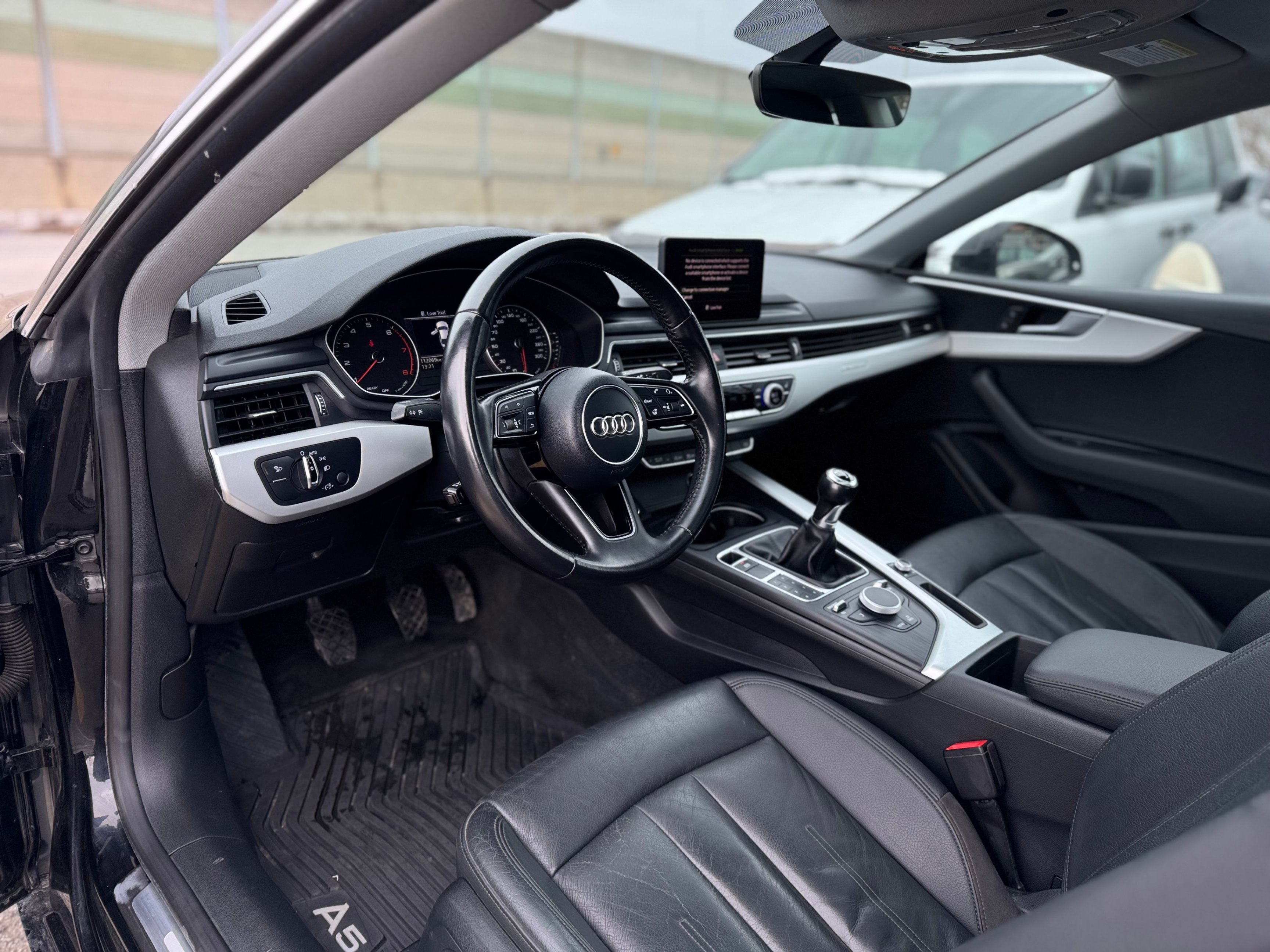 Low KMS Excellent condition 2018 Audi A5 Coupe with a rare manual transmission, finished in black with a black interior. Low Kms - Extensive Service History on Record. Sharp Looking Audi!