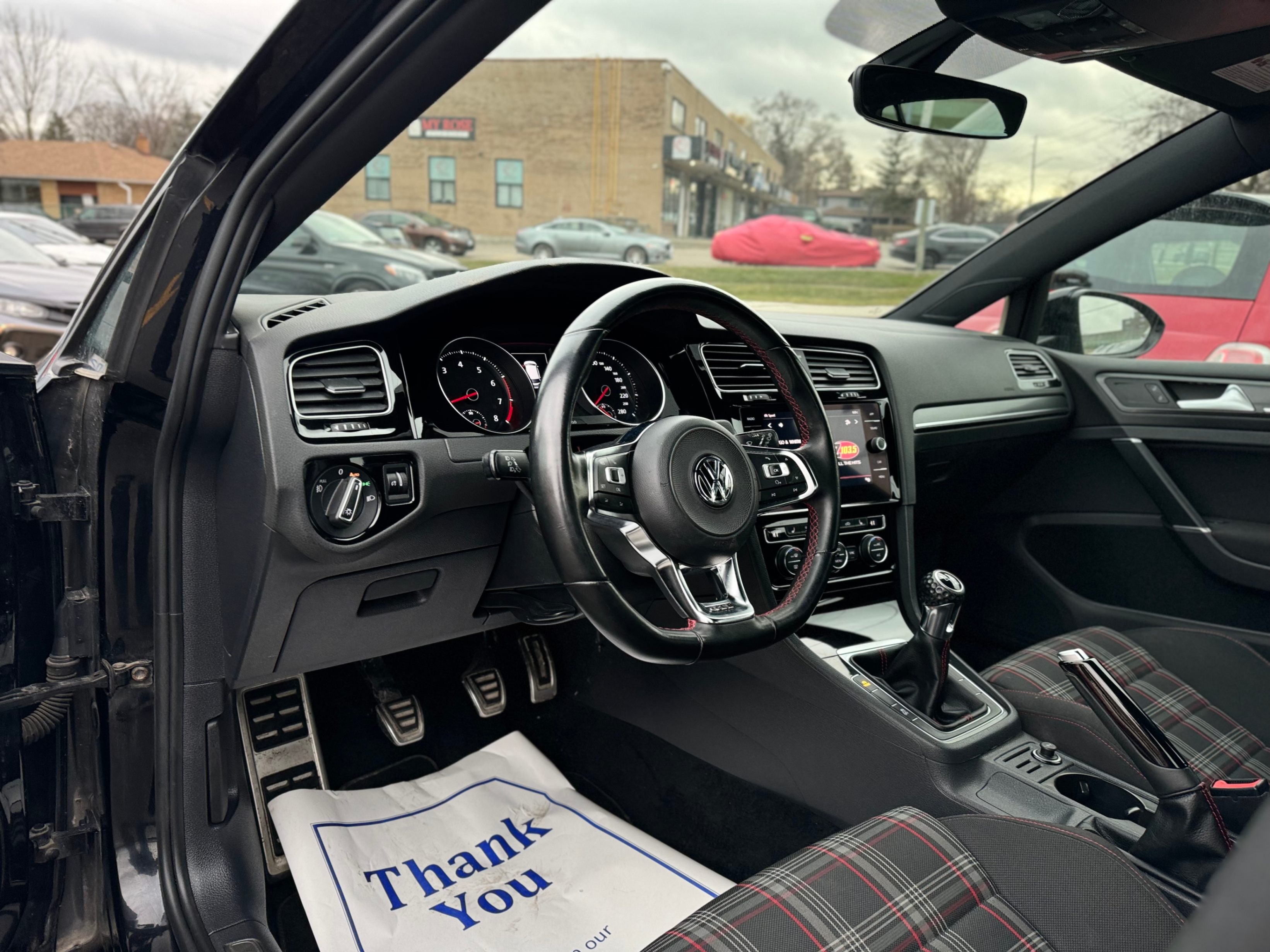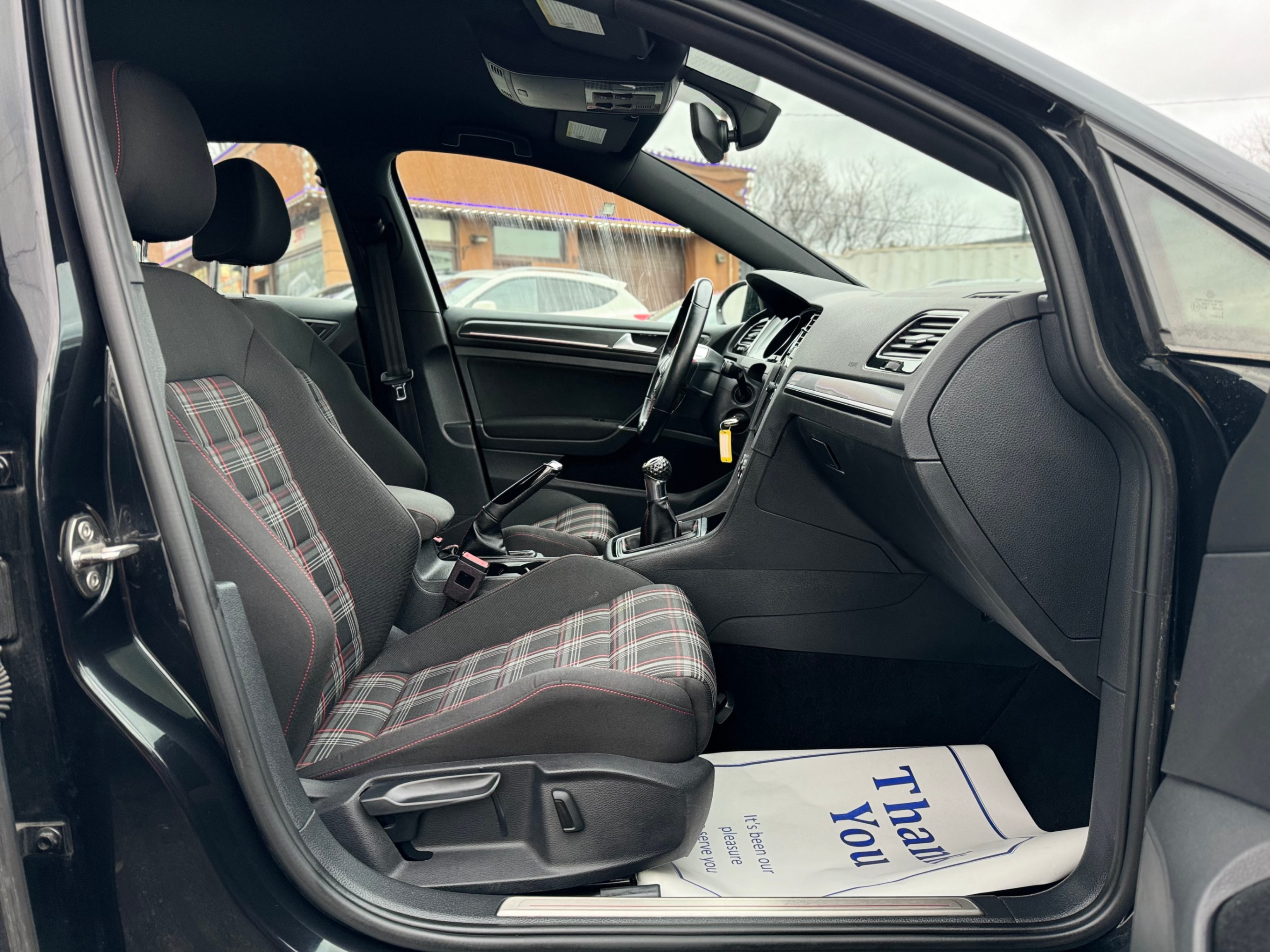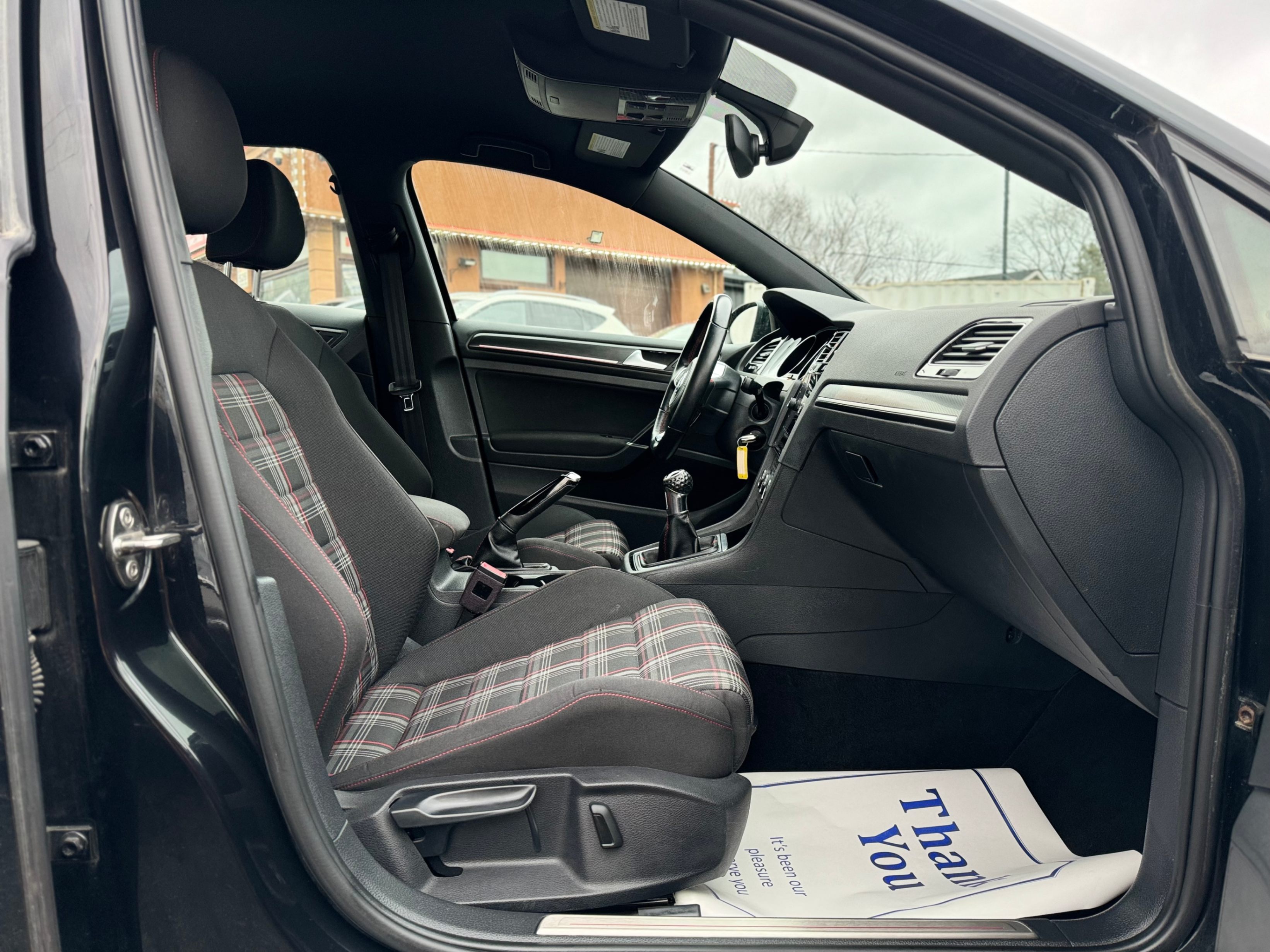 Sleek 6-speed black-on-black GTI, featuring the iconic "Clark Plaid" seats!